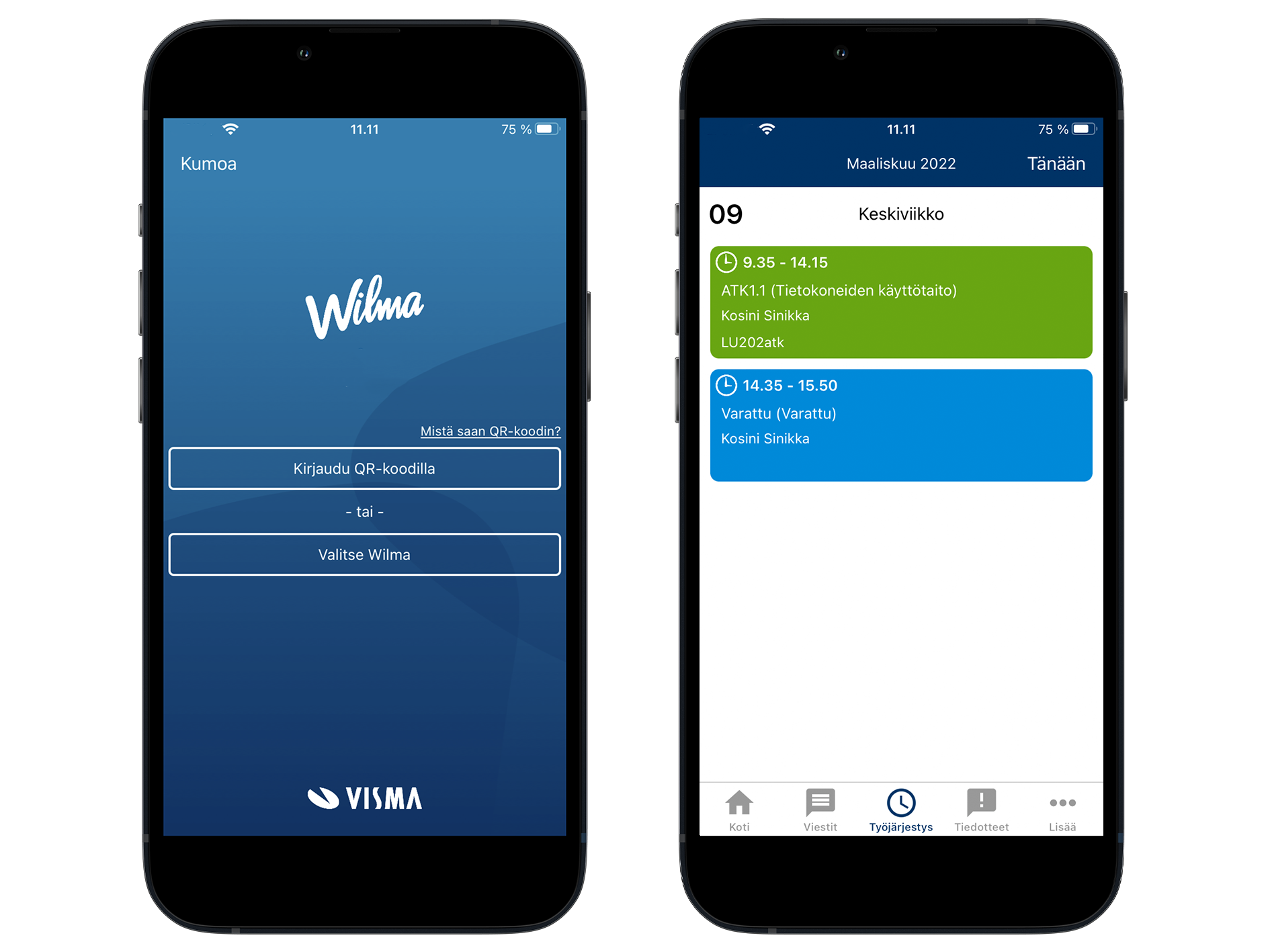 Wilma-sovelluksen kirjautumisnäkymä ja työjärjestys-näkymäTäältä löydät Wilman mobiilisovelluksen: